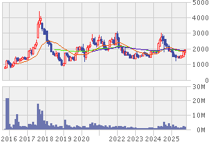5月15日に発表した2017年3月期の経常損益は2,094百万円、直近のIFISコンセンサス(1,500百万円)を39.6%上回る水準だった。また同日発表された業績予想によると2018年3月期の経常損益は47.5%減益の1,100百万円、IFISコンセンサスを46.3%下回る水準となっている。