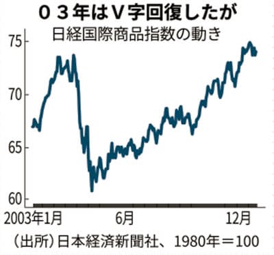 SARSショックで一時25ドル近辺まで下げた米原油先物もすぐに30ドル台を回復し、翌04年には40ドル台、50ドル台と高値を更新していった。